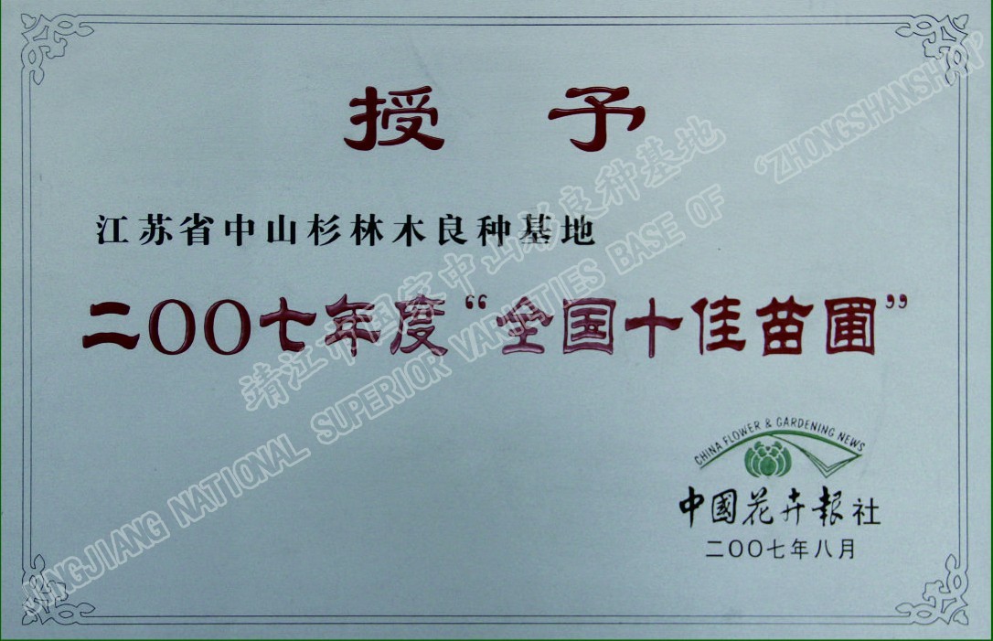 靖江市中山杉林木良種有限公司單位現(xiàn)有職工120人,其中中高級(jí)技術(shù)人員26人,初級(jí)技術(shù)人員45人,高級(jí)技工45多人,備有多功能灑水車、高空作業(yè)車、挖掘機(jī)、草坪噴播機(jī)等齊全的園林施工機(jī)械,年承接綠化工程100萬平方米以上。公司自成立以來,參與了眾多省內(nèi)外綠化重點(diǎn)工程的建設(shè),先后完成江陰長江公路大橋、潤揚(yáng)大橋、南京三橋、蘇州吳中大道、揚(yáng)州西北線繞城、無錫沿江高速、無錫342省道、滬寧高速、泰高路、寧通高......